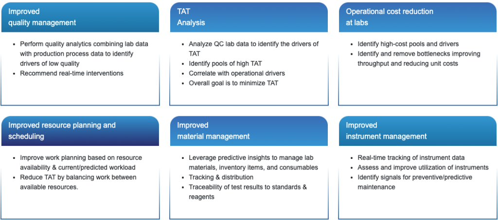The solution comprises of a rich library of laboratory KPIs that facilitate the following: